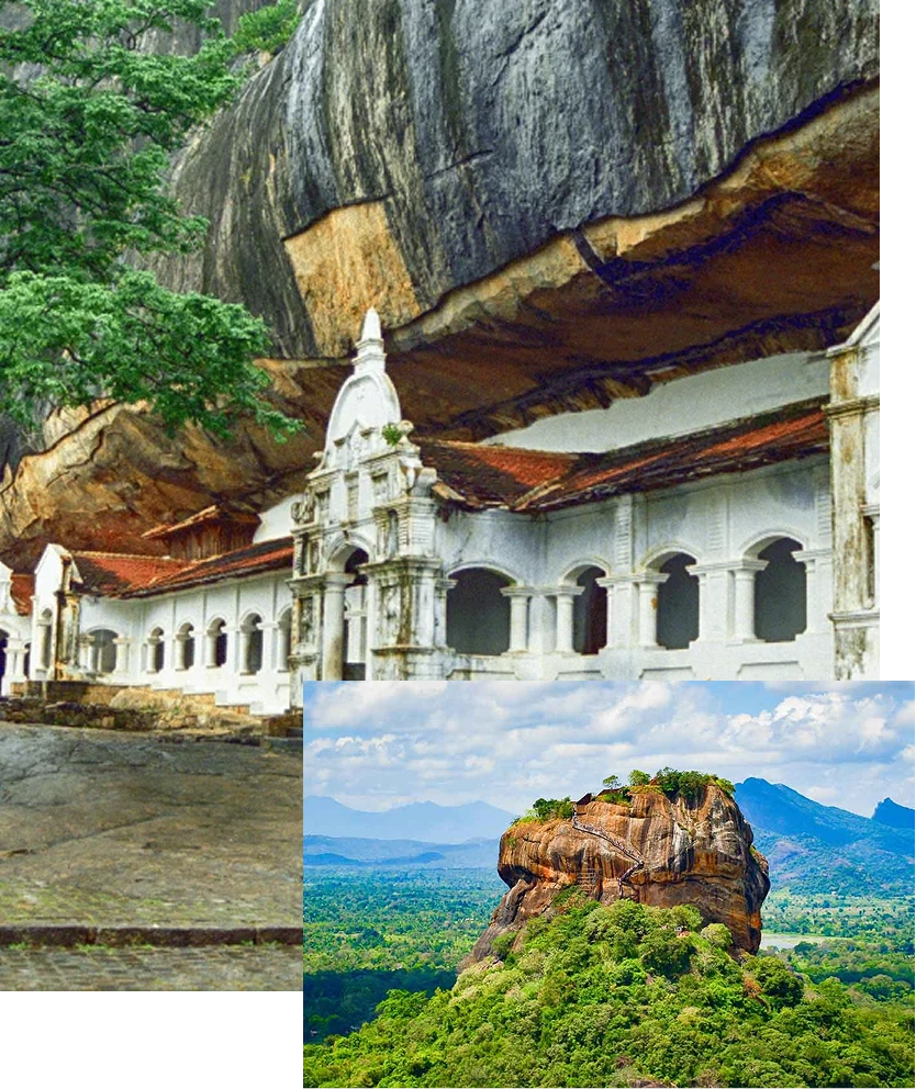 Sigiriya climb and Dambulla Cave Temples. You climb the ancient terraces of Sigiriya Rock Fortress and stand where kings once watched their realms spread below. The ascent is physical and emotional and the views reward you with a sense of scale and antiquity. In Dambulla you enter painted caves where devotion and art have merged for centuries before continuing to the well preserved ruins of Polonnaruwa.